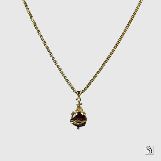 Gold Eye of Horus Red Gemstone Egyptian Ankh Key Of Life Pendant Necklace
