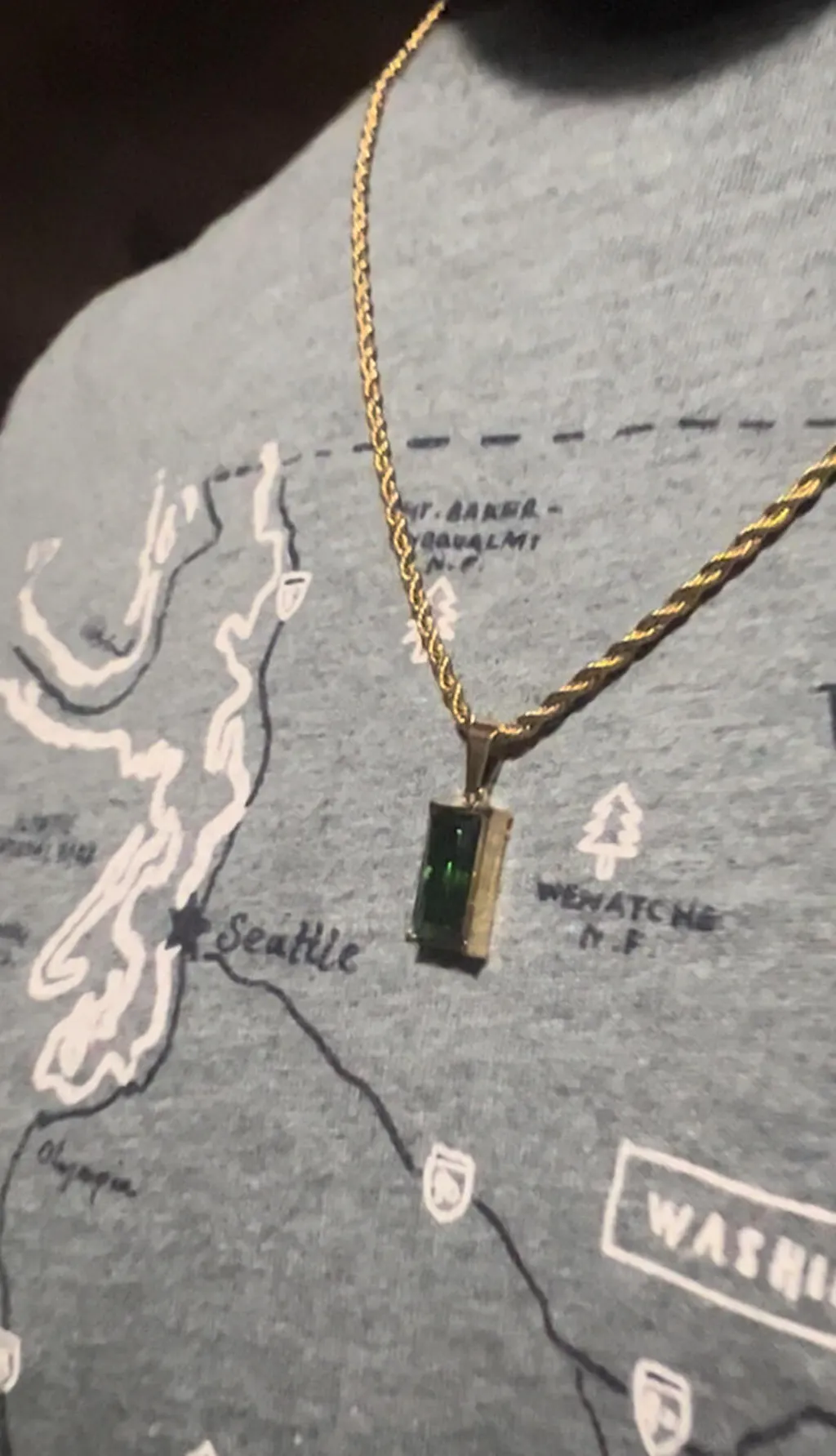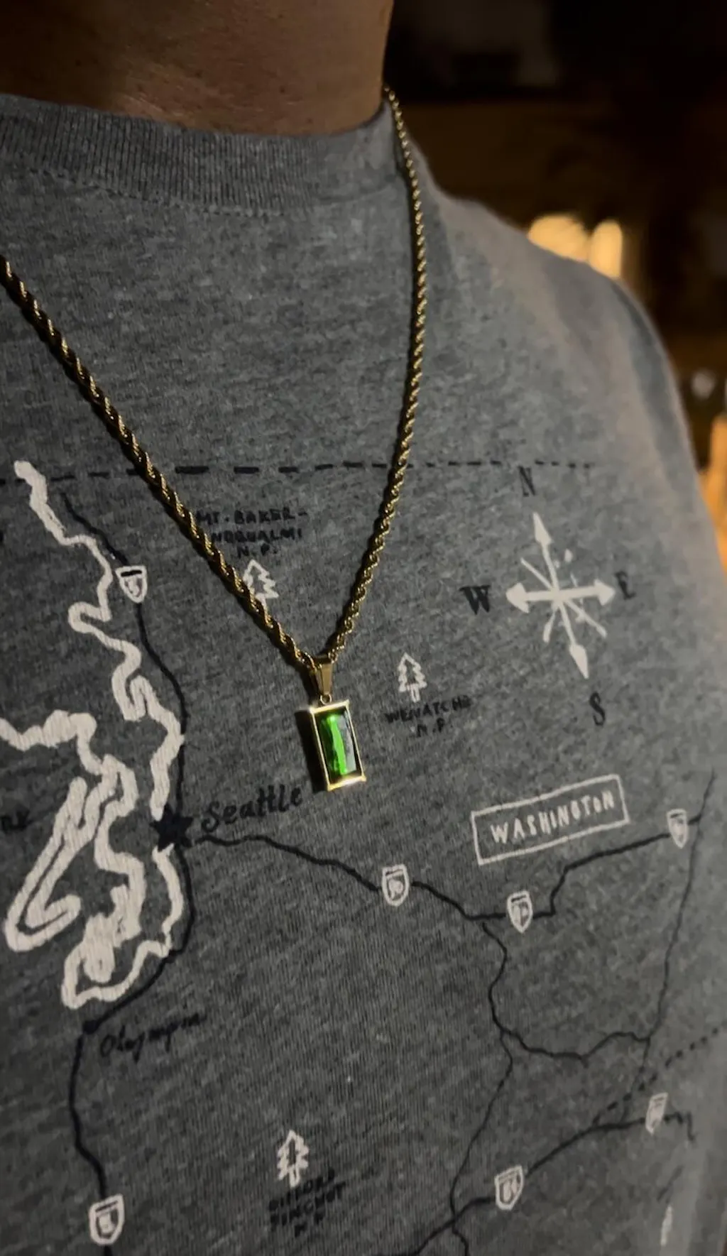 This stone pendant is a stylish accessory for any occasion. Crafted from a durable mineral and coated with an eye-catching green glaze, it is an enduring piece of art. Wear this unique pendant as a statement piece that will last for years.